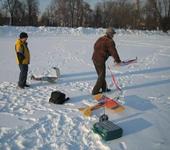 Далее летали уже мы с Lesh-им - он без РН, а я с новым винтом… По конец я начал делать чередой взлеты и посадки, и несколько раз отмороженый палец слетал с ручки пульта… Чудом поймав самолет в очередной раз, и оторвав лыжу на посадке я прекратил маятся дурью, мы собрались, и в итоге разъехались…