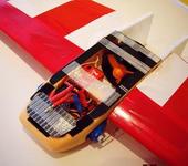 Я оставил перед импеллером небольшое пространство и придал (насколько интуиция позволила) задней части фюза сглаженную форму. К сожалению, часть приемника пришлось вынести в прсвет перед движком. Ну никак не влезало все внутрь отсека, а резать провода на сервах жаба задушила. 😃