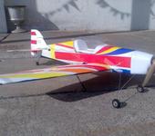 Я не знаю на что этот аппарат способен у других, с нормальным взлетным весом, но даже в моем варианте с весом 1600 г. !!! - летает как истребитель! Причем на малых расходах рулей! Летает увереннее с винтом APC 10х7 (внешне очень похож на родной винт).