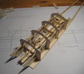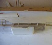 Слегка прихватываем клеем, а затем устанавливаем первый шпангоут и шпангоуты закрывающие верхнюю деку.