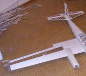 Проверяем каркас на предмет круток и перекосов и набиваем стрингерами. Когда всё установлено - тщательно проклеиваем фюзеляж.
