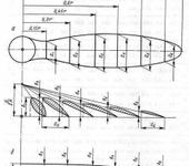 10х5-диаметр 10дюймов,шаг-5дюймов. В кордовой юности все винты делали сами.Дерво-граб или бук.Для правильного построения лопасти надо изготовить несколько шаблонов.Каждый шаблон для своего радиуса.Я бы нарисовал схемку,да в компах не силен.А вообще эта работа очень кропотливая.Дерево то твердое.Неделю тому назад поломал все винты на электричке,пришлось выстругать деревянный из дерева абаш.Отлетался нормально,но винт за один полет пришел в негодность.Так что или граб или бук.В крайне случае береза,которая сухая тоже не сладко обрабатывается