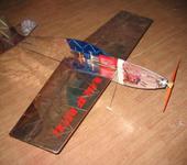 Сделал вот фекалоид из угольных палочек, бальзовых реечек и кевларвых ниточег. Размах что-то около 80, длина чуть побольше, мотор самодельный, взлетный вес 255г. На видео короткое бултыхание в комнате.