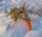 У меня полный взлётный получился 700 грамм (но это учитывая акк JP 3S2100 в 185 г весом!). Из-за него же, видать и центровка поначалу шибко передняя получилась - пришлось акк почти в центроплан задвигать! Кстати с таким же Пилотажевским акком - всё в норме. Регулятор Markus 30А, мотор сначала был “Pilotage” DT2213/20, потом поставил AXI2217/16, винты ставил АРС10Х6Е и 10Х5Е. С первым - ураган, со вторым поспокойнее. Доработал крышку акк. отсека (уж хлипкая больно!) наклеиванием изнутри 1,5 мм фанеры, одновременно вырезав в её задней части небольшое окно для выхода воздуха. А съёмными консоли (как и соединительная пластина) сделаны не столько для удобства транспортировки, а скорей для сохранения их при авариях (в одном из первых полётов “подвесил” довольно высоко,свалилась, ну а дальше “пошла колесом”. Итог - целые консоли отдельно от фюза! Который, правда, пострадал слегка (про его усиление писал выше). А в целом самолёт классный, ИМХО!