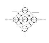 Если изнутри, то маленькие отверстия должны быть не все четыре на одном диаметре, а по два и на разных диаметрах.