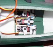Сервы. В штатной комплектации предполагалось только две сервы, поэтому пришлось делать собственную рамку для третьей. Также в районе крепления серв между верхней и нижней поверхностями крыла пришлось сделать усиление для большей жесткости.