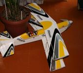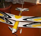 Сегодня поднимал - аппарат очень скоростной, на посадке чуток промазал. Вчера хозяин снес шасси на кочках. Так что облетывать только на большой площадке с ровной ВПП. Показалось, что расходы по инструкции элеронов маловаты.