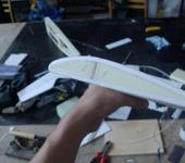 Я примерно так и сделал. Правда первый подобный фюзеляж я выкинул. Проще оказалось нарезать несколько кусков пенопласта и склеить, чем из единого вырезать. Дополнительно усилил линейками вдоль фюзеляжа. Крыло из потолочки сделал.