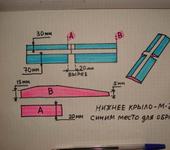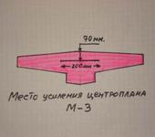 Хочу выразить благодарность Kotу SPB за помощь по выкладке чертежей! Для тех кто сделал консоли на М-1 выкладываю эскиз детали для усиления центроплана и придания крылу нужного V. Детали понадобится две: сделать их не сложно из деревянной линейки. В консолях делаем пазы, первый паз на расстоянии 40мм от передней кромки, второй паз на расстоянии 80мм. Вклеиваем на смоле нужные детали в пазы, затем склеиваем консоли между собой, предварительно обработав место склейки для плотного прилегания.