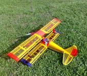 Бип получился очень удачный. Летать может как очень медленно, красиво, так и достаточно шустро и резко. Двигатель стоит AXI 2820, на 3S 2500 липо время в полете примерно 12-15 минут. При зажатых расходах - натуральный тренер, насколько хорошо и точно ведет себя в пилотаже - мне сказать трудно, не тот класс пилотирования 😃 . Не Себина Катана конечно, но основные фигуры пилотажа при больших расходах крутит неплохо.