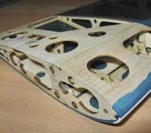 Корневую нервюру я залатал выломанными кусками и заплатками. Вторую нервюру я вырезал заново и приклеил ее к остаткам оригинальной.