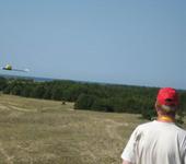 день добрый всем, теперь и мне есть, что показать. Свой планер доделывал ускоренными темпами перед поездкой на море две недели назад, обтягивал скотчем и делал для него ящик буквально за час до отъезда, поэтому испытания проходили уже на курорте. Ну что вам сказать - летает, и очень отлично, планер привез назад полностью целым😁, хотя летал каждый день по несколько полетов. Проблема состояла только в том, что там один песок, и приходилось после каждой посадки чистить движок. Петли планер делает легко, бочки вообще не хочет. По конструкции - для поддержания профиля в консоли крыльев установил нервюры из потолочки (профиль типа naca 4409), в консолях дополнительно установил помимо дюралевого уголка пластиковые штыри. Киль и стабилизатор полностью сьемные, крепятся на капроновом винте, тем самым удалось сделать коробку для планера размеров 1080х230х90. Киль из двойного слоя потолочки, стабилизатор с РВ - из бальзы 3мм, навеска руля на скотч. Навеска элеронов - на петли из дискеты. Хвостовая балка - текстолитовое колено от удочки, диаметром у конца 15 мм, у фюзеляжа 18 мм. Пришлось немного догрузить нос. Моторама имени работ Церетели😁 - пластиковая баночка с крышкой, на которой укреплен двигатель. то есть двигатель снимается выкручиванием крышки. В принципе все, остальное - как у автора. Несколько фоток, снятых в разные дни