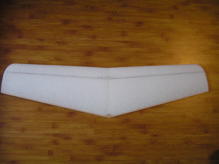 -на смоле склеиваем половинки. в этой версии угол V по 18 мм с каждой стороны (или 36мм если одно крыло лежит на плоскости - простите, что указываю не в градусах)