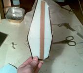 А про то как кромить рули заранее, читал что после кромления между крылом и рулём на 77 вклеивается полоска оставшаяся при отрезании, я даже сделал такое ядро для киля перед прошлой формовкой, сделал специальный брусочек с лезвием от ножа для обрезания на нужный угол(описывается помоему на сайте у М. Дрелы), но по неопытности стал обрезать с верхней стороны киля, а так как киль как двойная тропеция, отрез получился не ровный, ну тоесть линия по которой ломается петля получилась изогнутой по середине, вобщем плюнул на это дело и решил что мне тоже прощще потом отрезать:)