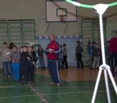 Мы в зале пометались на точность полёта, 8 команд, 80-100 участников, с 7 до 14 лет.