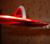 Вот мои модели из потолочки,которые получилось сделать за короткий срок времени… На носу обоих крючки,чтобы можно было запустить с резинки. Крыло склеено,чтоб самолет шел на вираж и далеко не улетал, при этом он летит плавно и без срывов (особенно большой) Немного не аккуратно обтянуто,конечно…
