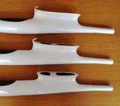 Фюз выклеен полностью из карбона , внешняя поверхность гелькоут . Балка внутри карбон , снаружи кевлар . Странно, но нахлёст видно, а шва даже на ощупь найти не удалось. Балка без разметки , и в инструкции никаких размеров не указано . Тоесть сверловка под крепление стаба , киля , выхода боудена РН - самодеятельность ? Не трудно конечно определиться, но не все десятый раз кит один и тот-же собирают. Вклеил мотошпангоут .Он там из стеклотекстолита 2,5 мм. Я с двух сторон фанеркой двоечкой его заламинировал на смоле ,подогнал бутерброд под внутренние неровности и на медленный эпоксид посадил. И полосочку тканьки для верности. Ох и упражнения ! Мордуленция тооонкая и длинная. Кстати , у меня третий вариант , тот который длинномордый (см. фотку) . Площадку под сервы доработал и собрал . Не понравилось что боуден задней машинки получается на довольно крутой изгиб , А машинка уже упирается в нижнюю стенку . Или серву чуток наклонно поставить, как боуден хочет ? Да. Вопрос по машинкам , стоит-ли связыватся с элеронными на хоббикинге ? И какое примерно усилие желательно на флапы. И паралельно , как крепить в крыле . Просто на внутреннюю сторону обшивки ? Хочется связать с другой поверхностью . Короб по размеру лючка ? Или пенкой заформовать всё-же ?