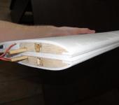 Печально. Но хочу вас обнадежить… Наши модели настолько относительно легкие, что скорость настоящего флаттера в отвесном пикировании может быть и вовсе не достигнута, при одном важном условии: - Балансиовки консолей на флаттер, установка в передню кромку ушей противофлаттерных грузов. Если жесткость лобика и так предельно возможная, это имеет смысл. Такой метод избавляет от флаттера даже полностью потолочные крылья с линейковым лонжероном. Максимум что бывает - закручивание ушей в минус и не более того(если крыло до того имело адекватную жесткость). Даже инверсии элеронов не наступает. Да, лишний вес… но что поделаешь? Зато для сильной погоды можно расслабиться, а в слабую… Ну если совсем фанатично, то снять грузы 😃 Можно придумать некие пеналы в ПК для их заначки.