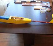 И ещё у тебя ВМГ находится ниже плоскости крыла, поэтому при даче газа модель будет задирать нос вверх, поэтому следует мотор наклонить вниз на пару градусов