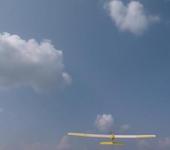 2. Второй заброс. Набрал высоту, триммер РН почти на макс, уже лучше , получилось планировть минуты 2 против ветра, но всёравно требовала иногда тянуть ручку на себя. Была тенденция к наклону носа, но против ветра держался. Ещё была тенденция к спуску модели в горизонтальном положени, я так понял, что всёравно центровка передняя. Вот и время вышло.
