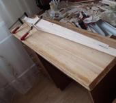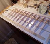 3 фото. Сборка крыла. Под стапель использую толстый клееный подоконник купленный в строительном магазине.