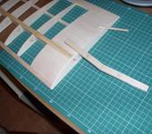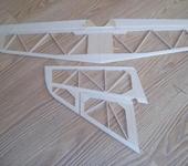 Стенка лонжерона, в районе обшивки и до 3й нервюры, из фанеры 1.5мм. Наружные волокна вертикальные. Остальные бальзовые 1.5мм.
