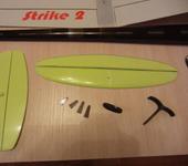 Полностью углепластиковый планер STRIKE-2, самый лёгкий и жёсткий из семейства этих метровых метательных планеров (наиболее близкий по полёту к полноразмерному планеру F3K и наиболее дорогой ).