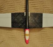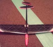 Конструктив: без пилона под крыло, стабилизатор и киль профилированные, крыло явно с вогнутым профилем (типа лифт), крыло пенное, V приличное (больше чем у классических металок).