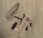 стандарт + крюк (Т-образный, жесткий) + шнур (очень похож на рыболовную плетенку) — хвост предполагается делать на торсионах (самого торсиона в комплекте нет, но это не проблема, еще ключик шестигранник под винты крепления крыла, элеронных тяг в комплекте тоже нет. Надеюсь Антон далее будет комплектовать самолеты всем необходимым для простоты сборки.