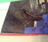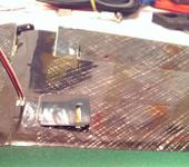 - Подготавливаем отверстие под выход проводов. Тут меня ждала неприятность. По центру крыла лежит усилитель, напоминающий очень жесткую то ли пластмассу, то ли эпоксидку и классический автоконнектор в крыле применить не получилось. Решил просто вывести провода наружу и делать коннектор на удлинителе.