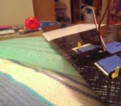 - Режем, выгрызаем пену. В процессе обмеров было принято решение отказаться от системы топдрайв, т.к. в этом случае тяги слишком сильно бы торчали снизу крыла. Решил делать тяги снизу. На тяги проволока 1,2 мм.