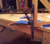 - Основная проблема заключается в том, что пилон стабилизатора крепится снизу балки – стандартный метод центровки стабилизатора с крылом (вклейка с перевернутым крылом) не проходит. Вынужден был придумать одинаковые подставки под крыло, крепить его на этих подставках, чтобы не съехало и долго промерять симметрию.