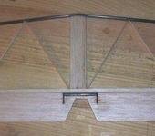 Закончил переделку. Помимо мотоустановки, для обеспечения центровки сделал новое оперение. (“Крылья, ноги - самое главное хвост!”). Старое весило 62 г, новое - 38. Можно было бы и меньше, но прокололся с килем - силовая схема могла бы быть получше, и при обтяжке сильно повело заднюю кромку. Пришлось усиливать. Сейчас сразу бы заложил переднюю и заднюю кромки из углевых трубок (d=3 или 4). На стабилизаторе сразу поставил такую на переднюю кромку, его масса около 22 г.