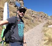 Вернувшись второй раз в Джилы-Су, я проложил маршрут до Немецкого аэродрома. Хотелось потетать именно там, потому что по картам место очень интересное и рядом в 200-300 метрах уже начинается ледник. Длина маршрута до конечной точки составила 8 км с перепадом высот 1200 метров. Идти достаточно долго и с непривычки утомительно. Нехватка кислорода тоже сказывается. Добрался только через 2.5 часа.По пути пару раз останавливался и отдыхал. Сердце на некоторых подьемах чуть не выпрыгивало из груди.