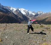 Вообще, конечно, летать на высоте 2800 метров над уровнем моря - это не то же самое, что на равнине. Разреженный воздух делает полёты очень скоротечными, взлёты низкими и не даёт права на ошибку. Средний взлёт, судя по высотомеру, составил всего 30-35 метров. Среднее время полёта 40-50 секунд. Завершить полёты на Немецком аэродроме пришлось после того, как планер, прибитый нисходящим потоком, просто таки провалился вниз по ущелью. Мысленно я уже распрощался с ним, потому что достать его оттуда не представлялось возможным, но мне повезло и своевременно пришедший термик, позволил выкарабкаться до высоты плато и довести до него планер.