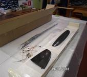 В комплекте новые штыри на 7,5 градусов, проводка, боудены, тяги, кабанчики, разъёмы, мотошпангоут, балластная камера, пилон под стаб, площадка в фюз для серво.