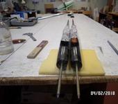 Вклеил боудены по известной технологии - фиксация боуденов по хвостовой балке магнитиками, проливка жидким циакрином. Пришлось с двух сторон лить, не добегает если лить с одной стороны:o На кончиках оболочки боудена ещё смолой с микросферой дополнительно зафиксировал. Ну и для собственного успокоения традиционно пенопластовую пробку загнал на середину длины боуденов. Фотки не