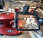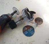 Делал вчера эту операцию для других целей, но по упомянутой технике. Сосновая рейка -16х4 мм. Инструмент - Dremel с дисковой насадкой. Диск с алмазной кромкой 0.4 х 40 мм. Плавающее крепление. Покупал в лавке по соседству среди инструментов для Dremel. Режет всё на выбранных оборотах. Рез получается ровный, шириной 0.5 мм. Конечно, длина реза с одной стороны 35 мм. Режим резки щадящий, с удалением угля и олилок из реза. Другим инструментом, которым можно делать такие же резы, но на меньшую глубину, является дисковая пила в специальной насадке 90° также из линейки Dremel (на фото). Ну и там же самодельные диски, вырезанные из остатков 115 х1 мм диска.