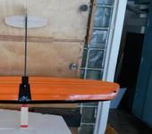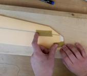Промазываем тонким слоем смолы склеиваемые поверхности, вставляем лонжерон, укладываем на ложемент консоль, скрепляем скотчем и сверху груз.