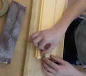 Перед тем, как соединит половинки консолей крыла, необходимо пройти по торцам соединяемых деталей бруском с наждачкой, для того, чтобы снять корку с пенопласта после резки струной и подготовить к склейки.