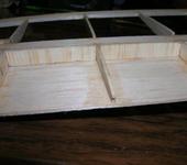 Режем лонжероны из твердой, плотной бальзы. Нижнюю обшивку лобика из средней бальзы и крепим к стапелю.