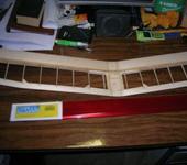 Потом приклеиваем переднюю кромку Иначинаем ее шкурить, следя за профилем.