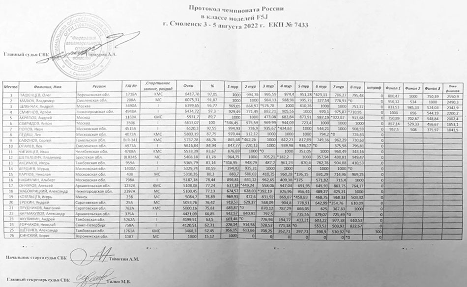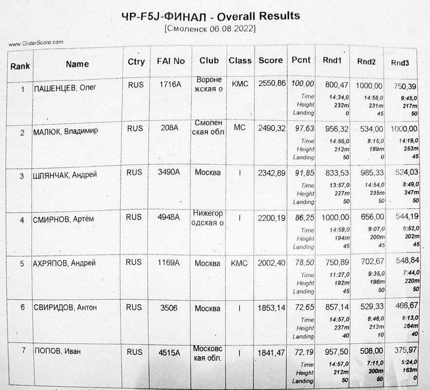 Чемпионат России F5J (Смоленск 06.08.2022)