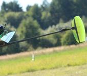 Но практика показала, что все наоборот) Самолет плохо стартовал, а еще его сильно тянуло влево (внутрь круга). Для избавления от увода в круг на забросе пришлось спустить киль вниз относительно оси самолета. Тогда он выровнялся и стартовал ровно, но скольжение осталось, особенно в неопытных руках.
