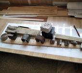 Зато потом все это собирается легко и непринужденно. Стенки оконтуриваются бревнышком бальзовым 6х6 мм, к хвосту сходящим на 4х4. На пузике изгиб довольно большой, и рейка так не выгнется. Поэтому нужно эти стрингера согнуть предварительно. Для этой цели был изготовлен гибочный кондуктор. Хотя, не так. Есть у меня пара- тройка самолетно- технологических книг из времени, “когда самолеты были деревянными, а люди стальными”. Так вот там это называется гнутарным приспособлением.