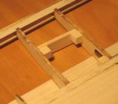И еще, приклеил я к нервюре кусочек бальзы (полочку) чтобы пленка лучше держалась (на фото обведена красным)