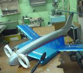 Некая фанерная рама вроде с 2,5 кубовым мотором…