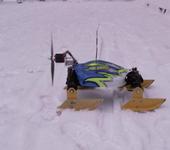 управляемость шикарная,единственная проблема это снижение веса ,есть еще задумка поставить лыжи пошире,чтоб не так сильно проседали в снег.на лыжах снизу приклеен небольшой кант, для лучшей управляемости,есть еще идея установки 2-х винтов,чтоб побольше загребали.(проблема веса заключается в том что конструкция зафиксирована на алюминиевом шасси,оно то и дает вес .Как снизить вес пока идей никаких нет.