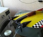 Сделаю лыжу, пожалуй. А около кабанчиков элевонов небольшие опоры для защиты. Хотел сделать кабанчики вверх, но перепутал при монтаже фюзеляжа.