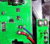 Подтверждаю, видно плохо. Сынуля грит что J😒 Сам не вижу. Диод на питание однозначно на монтажке обозначен D1. Обратите внимание С - конденсаторы. Теперь об измерениях. Красный провод подключен к акке через включатель питания. На нем 9, 64 В. (В моем случае, ака не полностью заряжена.) Элемент D2 имеет три вывода, два из которых подключены к этому же проводу и далее провод уходит на ВЧ модуль. Третий вывод D2 подключен к фиолетовому проводу который тоже уходит на ВЧ модуль. Разность напряжений между красным и фиолетовым 0,28 вольта. Вероятнее всего (99,9%) D2 это транзистор включенный как диод, а 0,28 вольта - падение на открытом переходе. Проблема разрешаемая. Но диод как правило просто так, как Вы понимаете не горит. Проблема возможна на ВЧ модуле. Удачно будет если просто коротнули фиолетовый провод на корпус. Сегодня нет времени со схемой разбираться. Через пару дней попробую глянуть модуль ВЧ. Отпишусь.